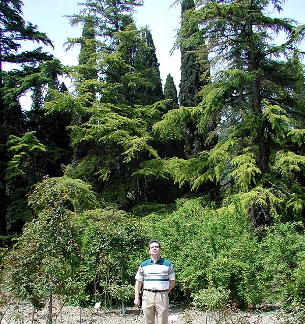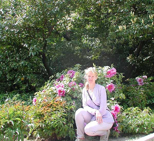 here's Marina near some purple flowers Here's me near some kind of evergreens. They had lots of trees and
