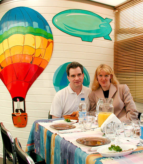 you think? This evening, we have dinner at a small restaurant. They have a musician, and I ask him to sing "The Girl From Epanina" (you know, "Tall and tan, and Oh, so lovely) Marina had some kind of very spicy beef soup - it was so good, I wish I had ordered it. I ate lots of her soup - she was nice and let me have all i wanted :-) I had Shaslik, which we would call Shisk-ka-bob. It was delicous too. The food here was so good, everything was delicious. I ate and ate and ate, and everything was great! Most everything was different from what we have in the USA (the same food, but they just cook it different), but it was so good!!!!!!!!!