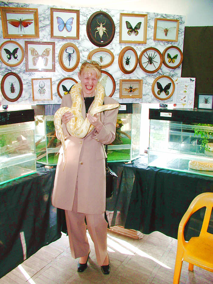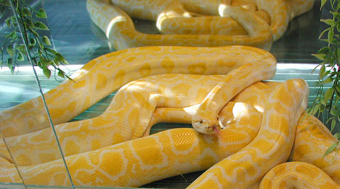 Here's some really strange snakes - I don't know what they are, some kind of constrictor, I think. But I haven't ever seen or heard of any yellow and white snakes like this. I told Marina to ask the