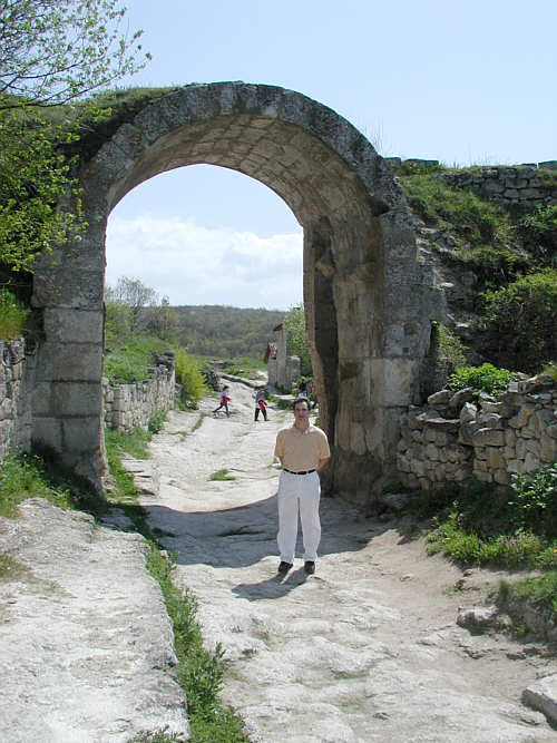 When we last left our two intrepid adventurers, we are still at the top of the mountain, several thousand feet higher than we started out. At the top, there is the ruins of an ancient city. "Roads" are just rocks on the ground, but you can see where wagon wheels have worn "troughs" into the rocks along the road. Here's an arch, I don't know how old it is.