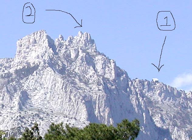walk to the peaks at (2), several hundred feet higher. Okay, that's all for now.