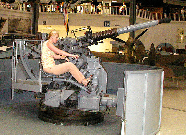 Inside this museum, there are so many planes, old and new ones, everything in between, I can't even tell you. Dozens, dozens, and dozens of planes - maybe over 200? There are so many it is hard to tell. Here's Marina, blazing away on the Anti-Aircraft guns, she looks so