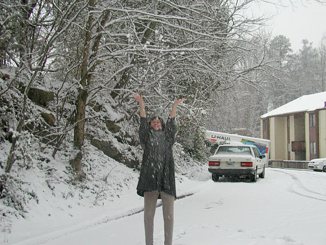 This is Marina outside our apartment. We were having lots of fun, it has been so long since we've had much snow in Knoxville.