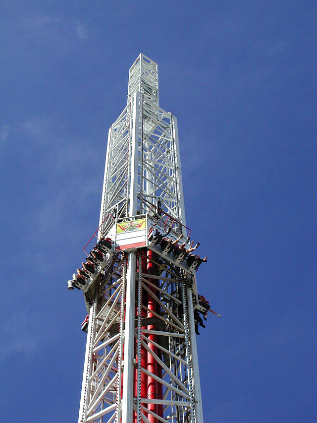 In the "Big Shot" ride, you sit in a seat, and it shoots you up in the air about 300 feet, then you fall back down, and up again, down again, etc. When you are at the top, falling, it is like you have fallen out of an airplane - you can't see anything above you or below you, and you are just falling from a great height.